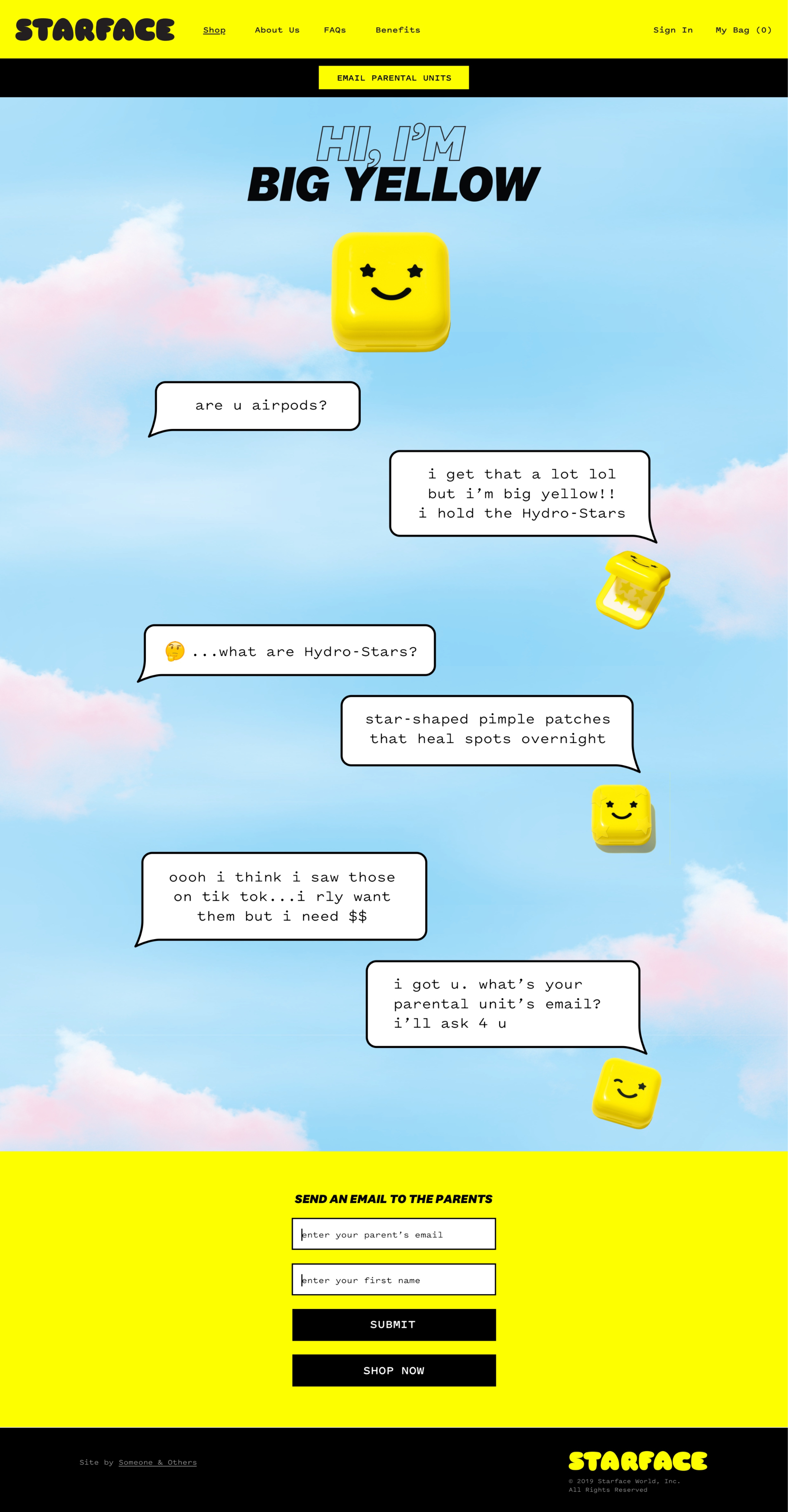 I collaborated with the creative agency 'Someone and Others' to design social assets, emails, and the website for Starface.